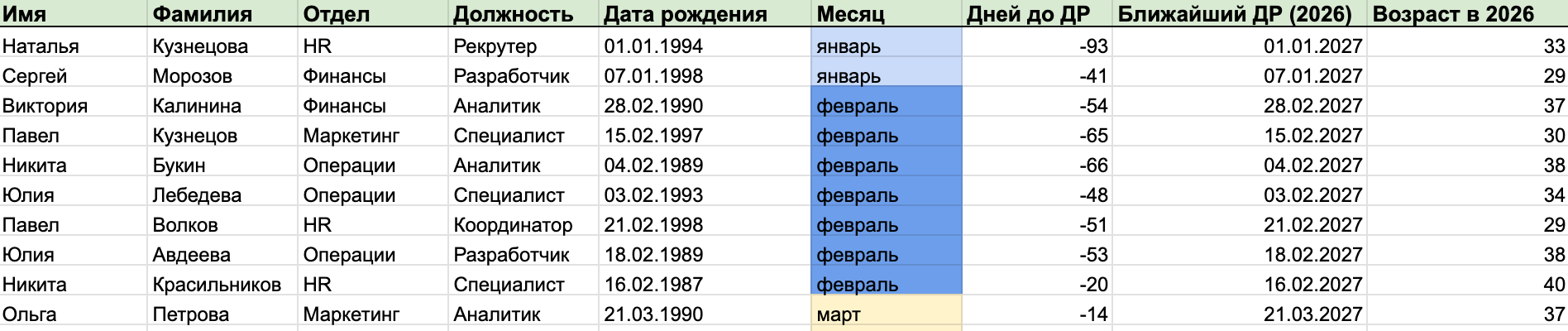 Скачайте шаблон таблицы с днями рождения сотрудников