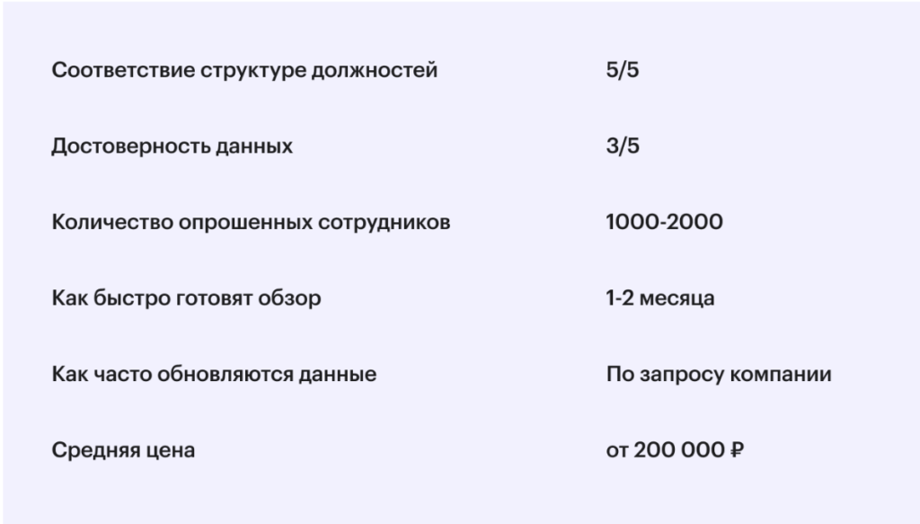 - Насколько понятно и логично составлены уровни должностей в обзоре. Идеально, если они пересекаются с грейдингом в вашей организации.