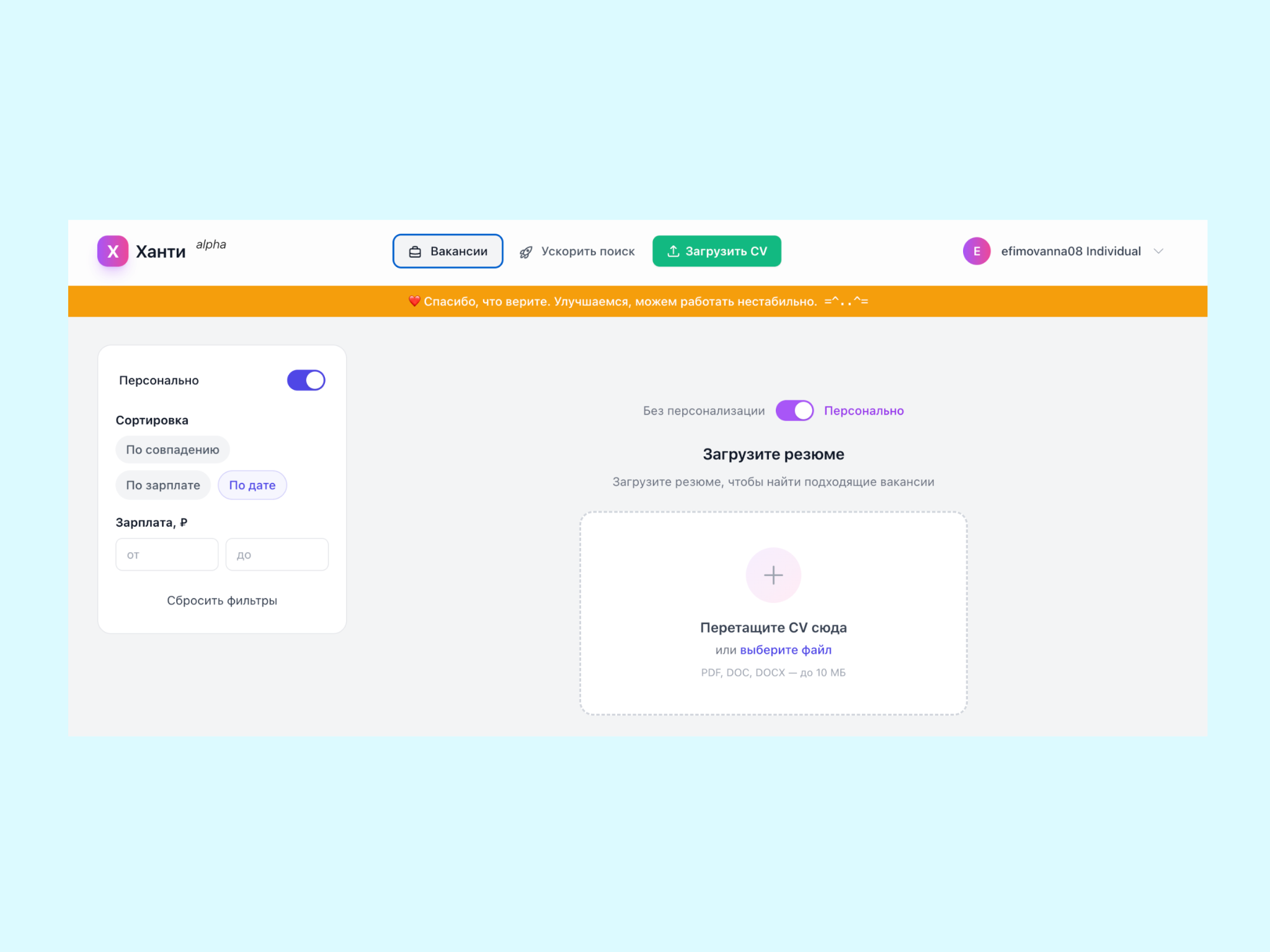 На словах это выглядит как попытка помочь кандидатам быстрее находить работу мечты за счет умного подбора вакансий. Проект пока находится в альфа-версии.