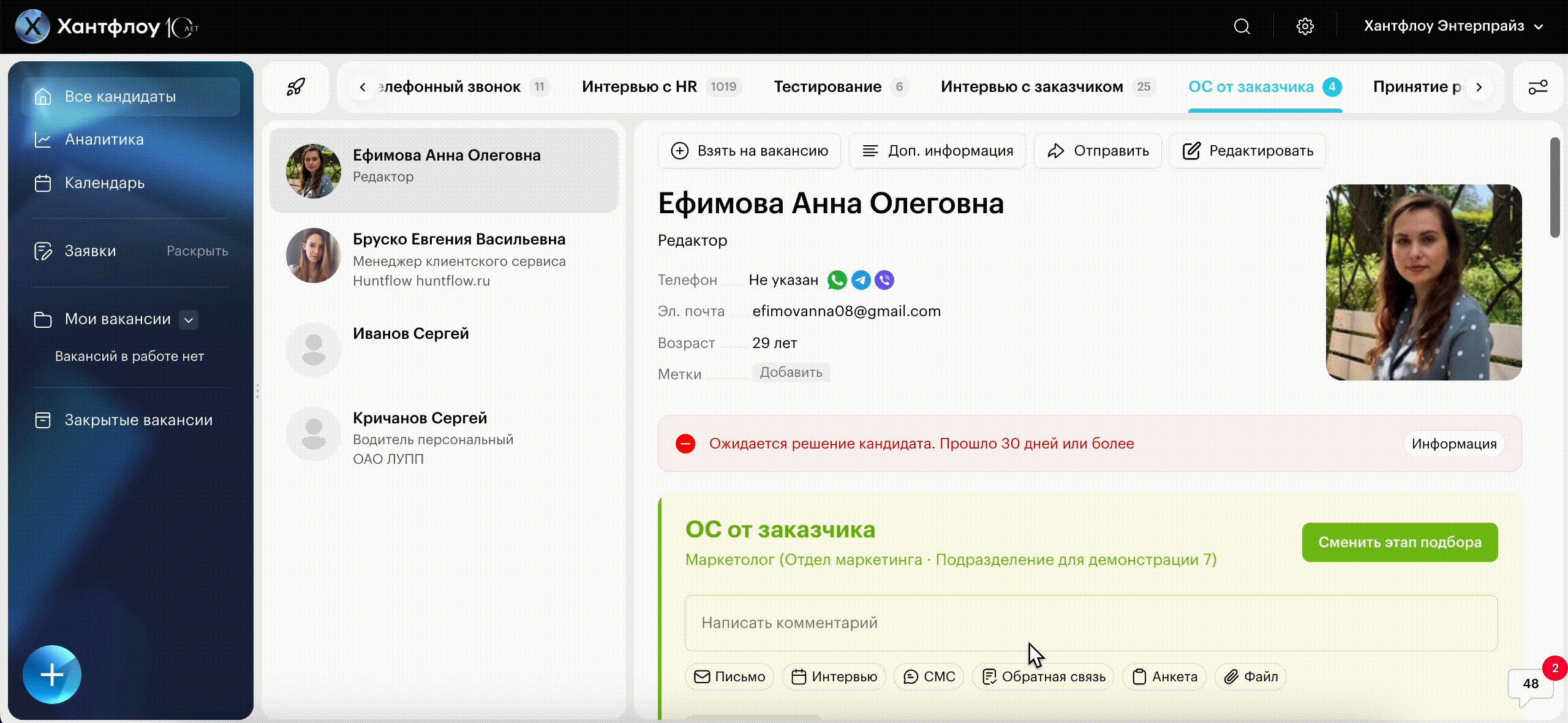 Ответное письмо кандидата может потеряться в общем потоке, а сообщение в мессенджере — случайно остаться без внимания.