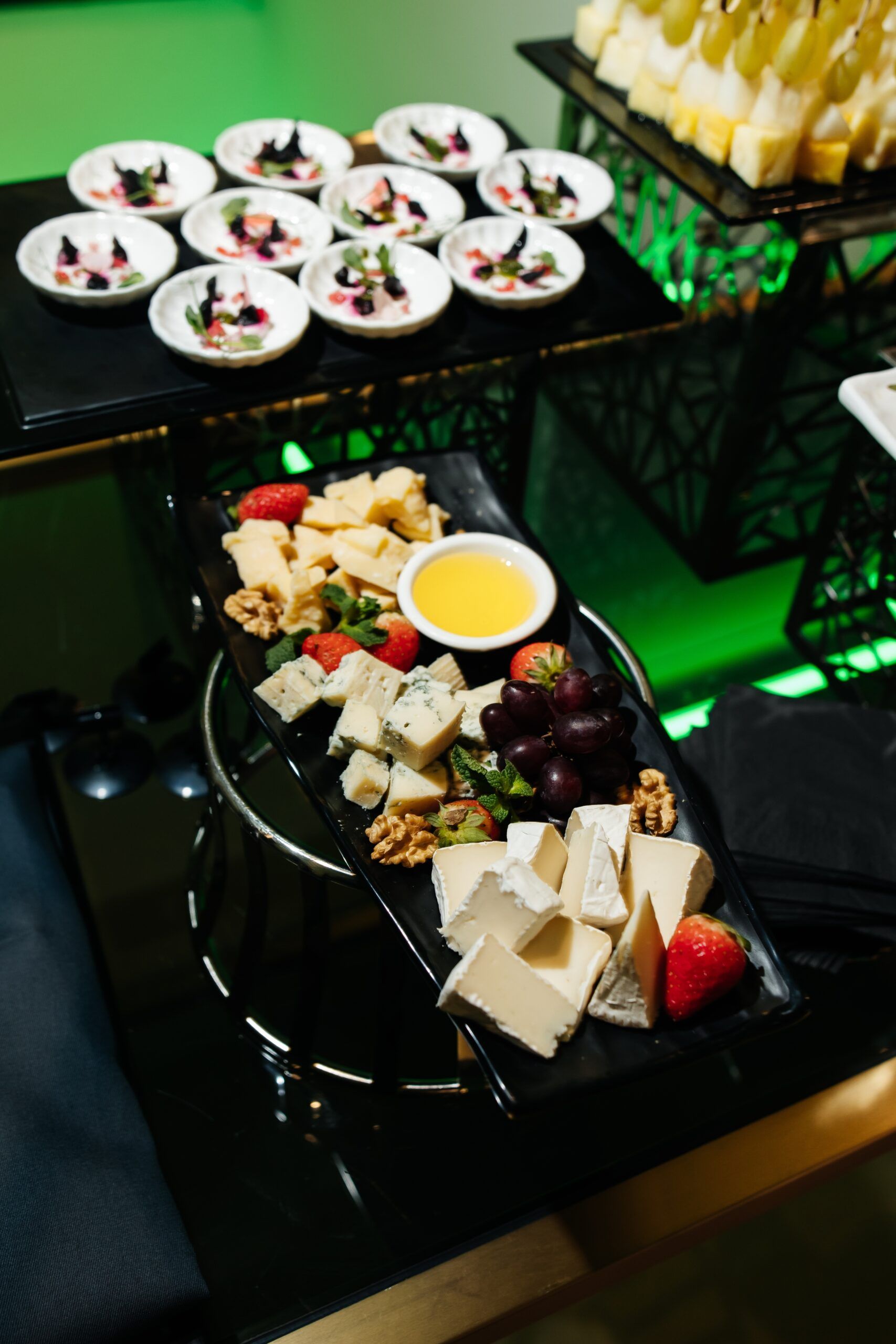 Вечерний фуршет стал ярким завершением дня: канапе с семгой и терияки-кремом и тигровые креветки с васаби-дрессингом создали финальный взрыв вкуса. И, конечно, финальный штрих — игристое! Холодное, искристое и бесконечное, как наша любовь к рекрутерам.