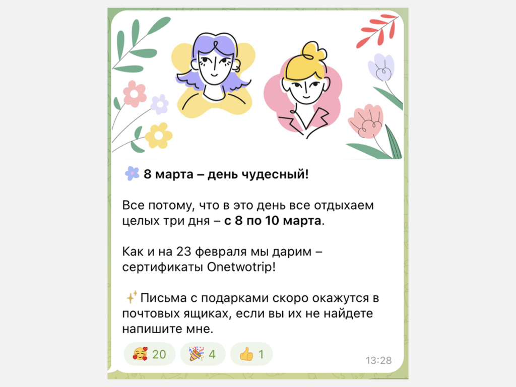 - Примерно за шесть дней до выходного в общем канале команды напишите, какие дни будут нерабочими. Уточните, что длительность рабочих дней накануне не сокращается