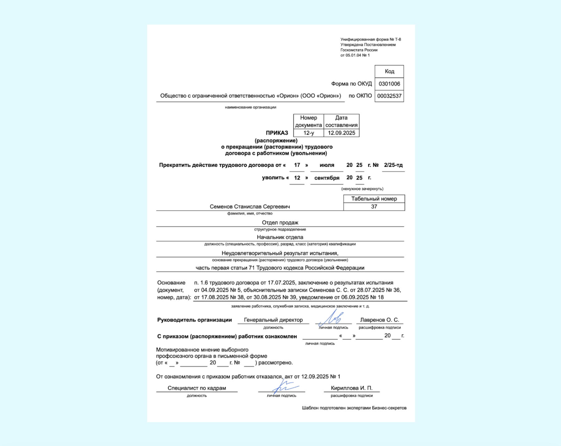 Шаг 3. Оформите приказ об увольнении