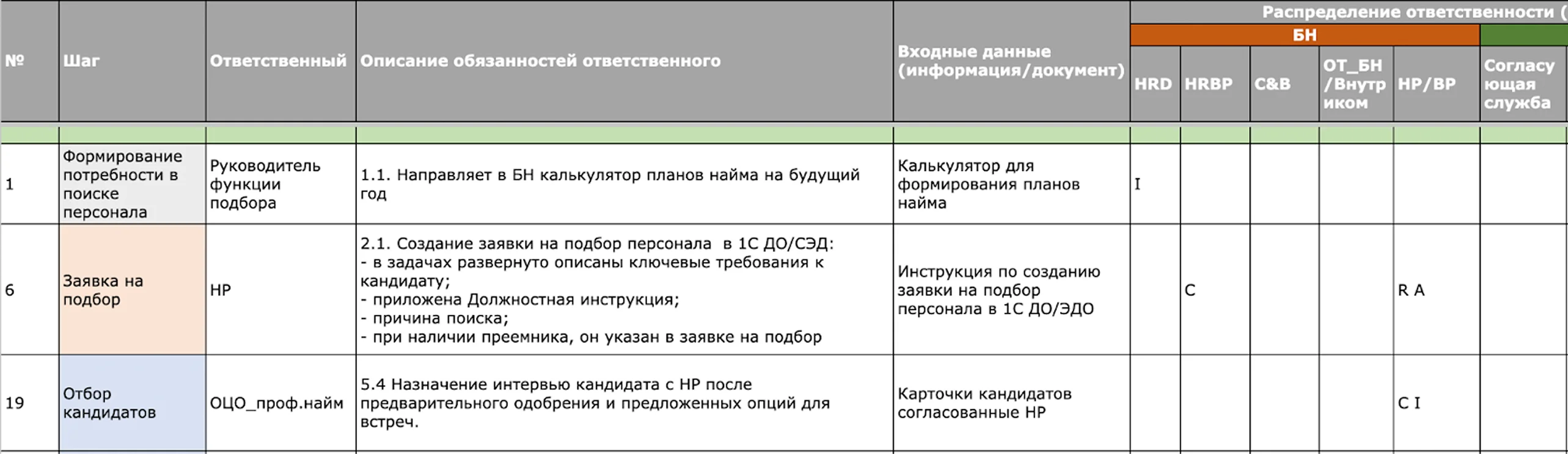 💡 Совет: создайте визуальную матрицу ответственности, например по принципу RACI. С ней рекрутеры и менеджеры сразу видят, кто отвечает за каждый шаг. Это снижает конфликты и устраняет «размытые зоны», где никто не понимает, кто что должен делать.