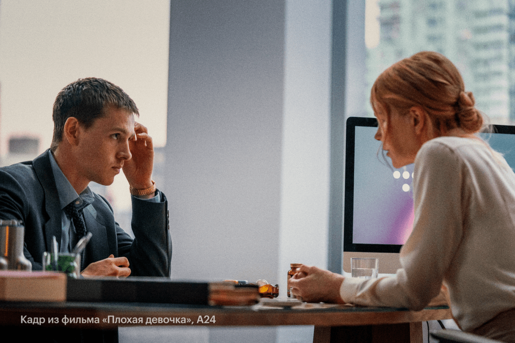 «Плохая девочка» показывает те же последствия, но в художественной форме. Решения героини Николь начинают восприниматься как необъективные — это видно по недоверию со стороны коллег. А любое напряжение в отношениях автоматически превращается в потенциальный корпоративный инцидент.