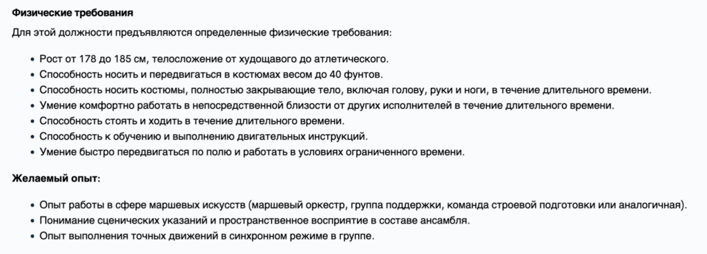 В анкете к отклику также спрашивали об опыте в духовых оркестрах или индустрии развлечений.