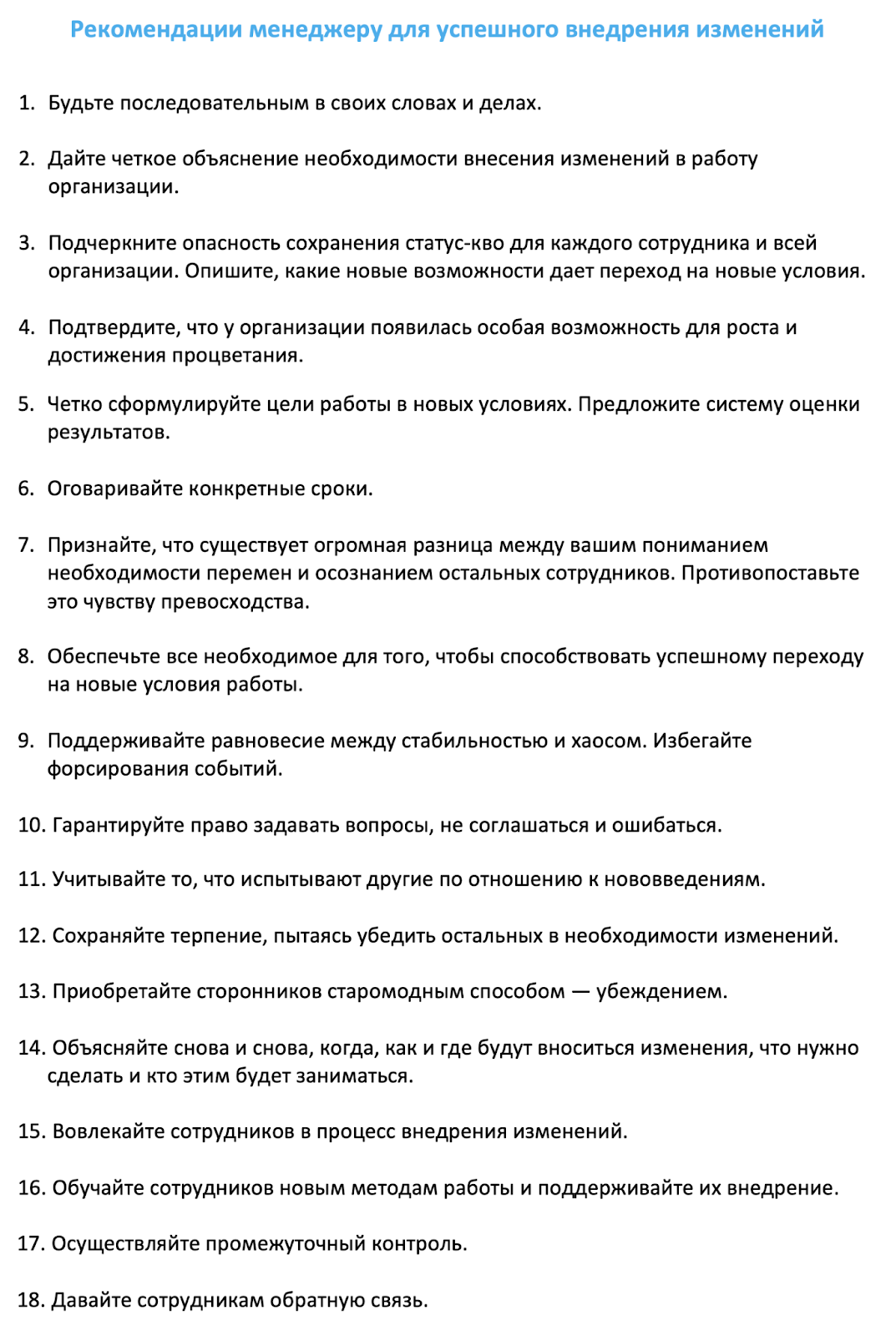 На основе своего опыта применения ADKAR я составила памятку для менеджеров по внедрению изменений без ошибок.