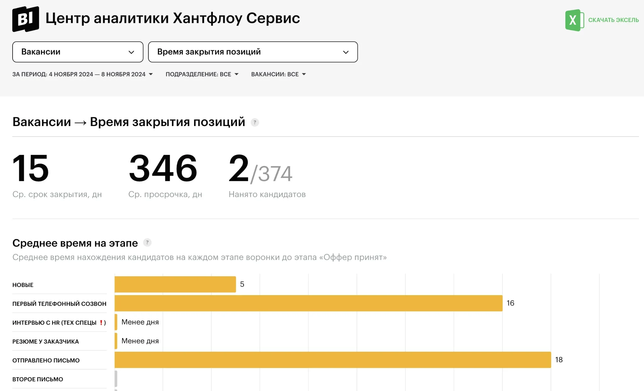 Команда найма не страдает из-за аналитики в Excel и может прогнозировать сроки закрытия позиций