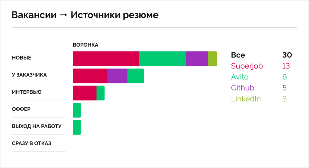 - Анализируйте эффективность источников. CRM для найма точно покажет, откуда пришли лучшие сотрудники, чтобы оптимизировать бюджет на поиск.